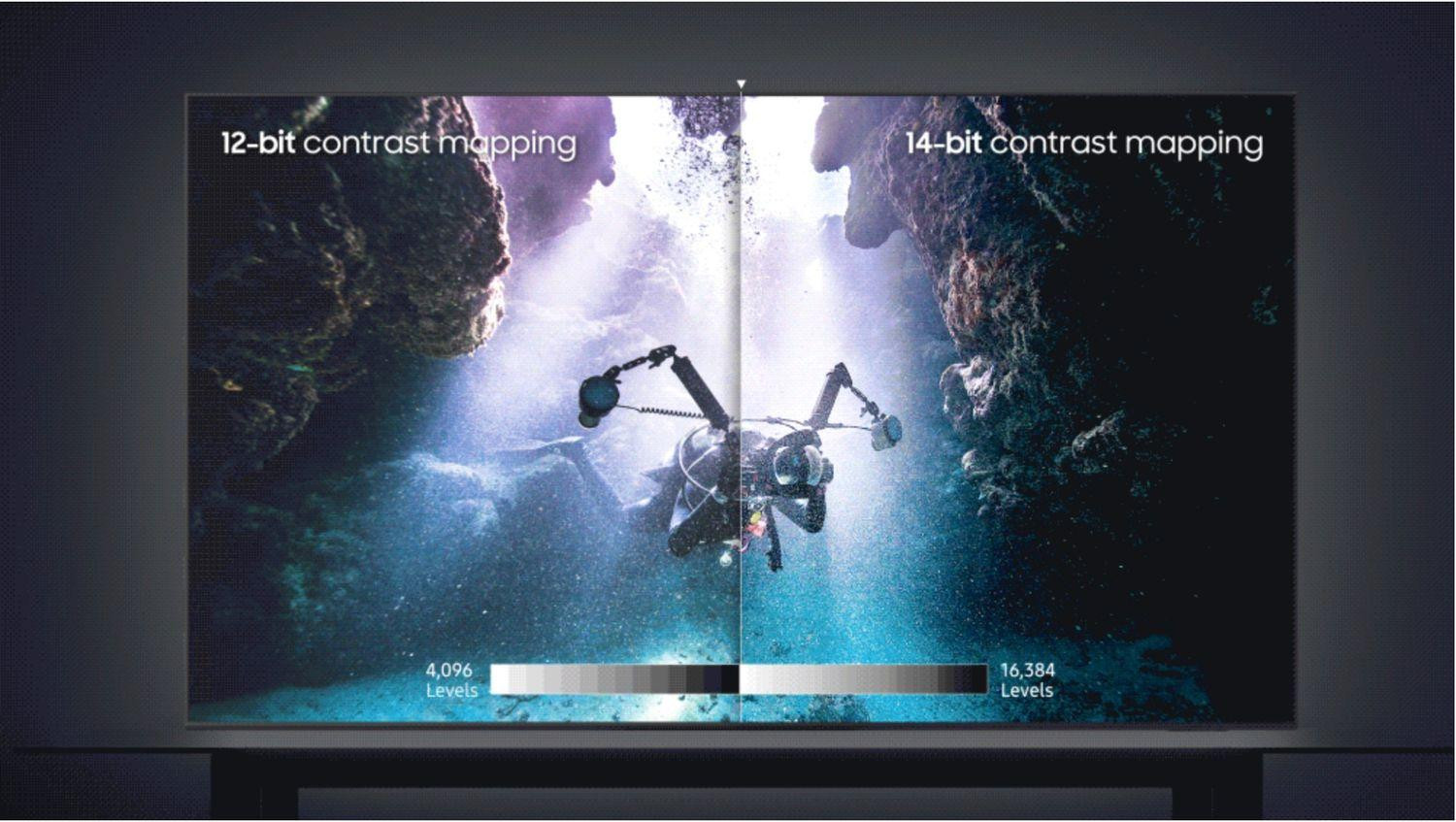 Nhờ khả năng hiển thị thang độ màu rộng hơn và bao phủ dải màu lớn hơn, giờ đây hình ảnh trên TV Neo QLED mới sẽ có độ tương phản cao hơn và hình ảnh có chiều sâu hơn, sắc nét hơn. Đây cũng là dòng TV thương mại tiên phong trên thị trường cán mốc tương phản ánh xạ 14-bit.