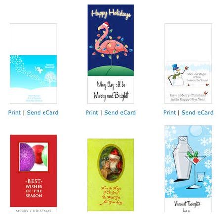 Trang web có 38 kiểu thiệp khác nhau, nhiều màu sác, được vẽ rất độc đáo và tuyệt đẹp. Ngoài ra, trên trang web này còn có một đường link tới một trang khác, cho phép bạn thêm ảnh vào một trong tám mẫu thiệp Giáng Sinh, bao gồm hình ảnh của ông già Noel, bông tuyết, người tuyết, cây Giáng Sinh, đồ trang trí, cảnh mùa đông, và nhiều hơn nữa. Kích thước của các tấm thiệp này là 5 × 7, chúng không chỉ được dùng làm thiệp mừng Giáng Sinh mà còn có thể dùng như là thiệp cá nhân, hay trong những dịp đặc biệt khác.
