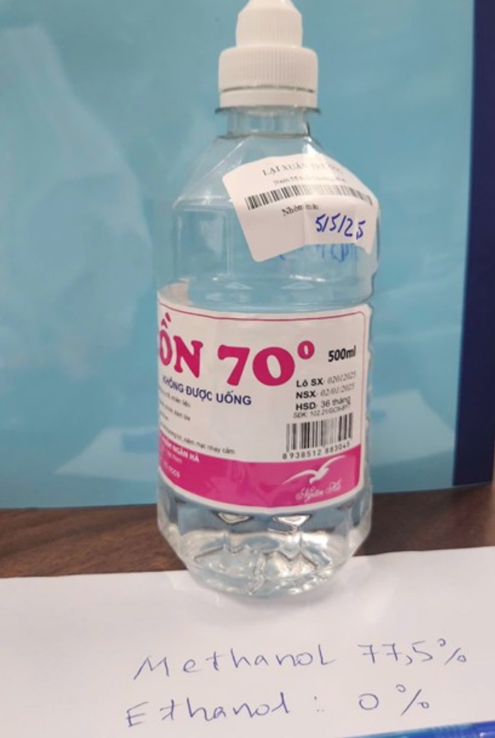 Một trường hợp điển hình là bệnh nhân 55 tuổi tại quận Hoàng Mai (Hà Nội) nhập viện trong tình trạng hôn mê sâu, suy hô hấp và tổn thương não nghiêm trọng sau khi dùng cồn y tế giả để súc miệng chữa đau răng. Kết quả xét nghiệm cho thấy nồng độ methanol trong máu lên tới 116,63 mg/dL, chai cồn được mua từ hiệu thuốc gần nhà chỉ chứa methanol.