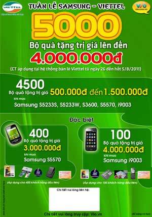 5000 máy điện thoại Samsung tặng kèm bộ quà tặng có giá trị từ 500.000 đồng đến