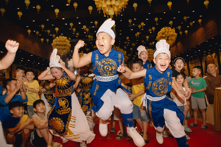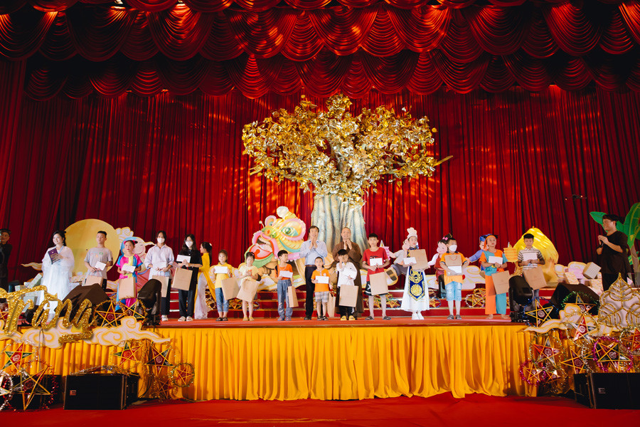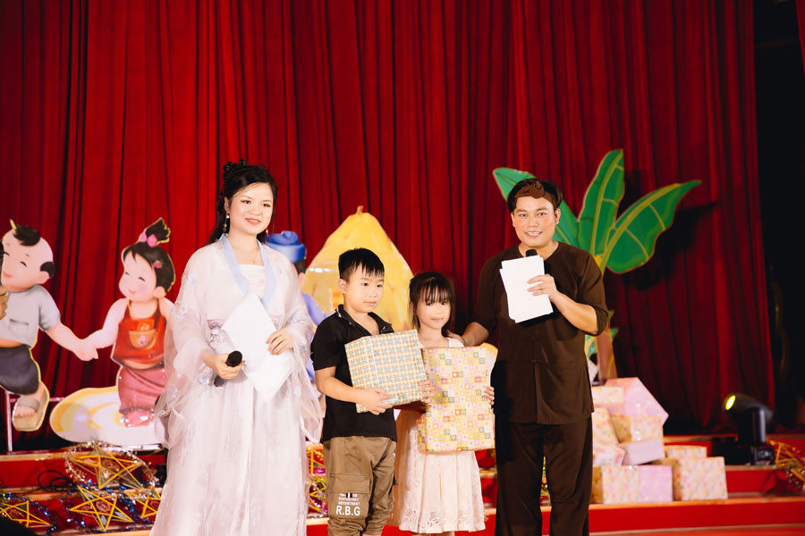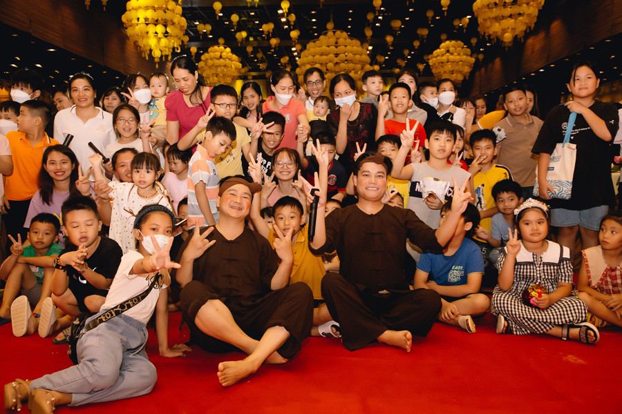 Với mong muốn mang tới cho các em thiếu nhi một mùa trung thu ý nghĩa, những hoạt động bổ ích lý thú, chùa Tam Chúc, Hà Nam đã tổ chức chương trình "Lễ hội trông trăng" dành cho các em nhỏ và khách du lịch.Đêm Trung thu diễn ra vào ngày 14/8 âm lịch (08/9 dương lịch) tại trung tâm hội nghị quốc tế Tam Chúc thu hút đông đảo các em nhỏ, phật tử, du khách và người dân tham dự. Năm nay, sự kiện kéo dài trong ba ngày từ 08-10/9/2022.Tại sự kiện các em nhỏ được xem các hoạt cảnh Cuội thật - Cuội giả và màn văn nghệ chú Cuội chơi trăng do đạo diễn Nguyễn Lớp, NSƯT Đới Quân, Phạm Anh Tuấn, Hà Đan, ca sĩ nhí Kiều Minh Tâm tham gia biểu diễn. Ngoài ra, các em còn được được tham gia những trò chơi dân gian, đố vui có thưởng, múa lân đặc sắc và nhận những phần quà trung thu ý nghĩa.Những tiết mục đặc biệt trong chương trình "Lễ hội trông trăng" tại chùa Tam Chúc năm nay giúp các em nhỏ lưu giữ kỷ niệm tươi đẹp, trong sáng của tuổi thơ. 5000 suất quà đã được trao cho các em thiếu nhi. Ca sĩ nhí Kiều Minh Tâm biểu diễn tại chương trình.Các nghệ sĩ cho biết, dù đã "có tuổi" nhưng khi được làm chú Cuội, chị Hằng họ đều háo hức như chính họ đang được trở về với tuổi thơ của mình. Đạo diễn Nguyễn Lớp trao quà cho các em nhỏ.Các nghệ sĩ mang tới trung thu đầm ấm và sôi động cho các em nhỏ.Diễn viên Phạm Anh Tuấn bên các fan nhí.
