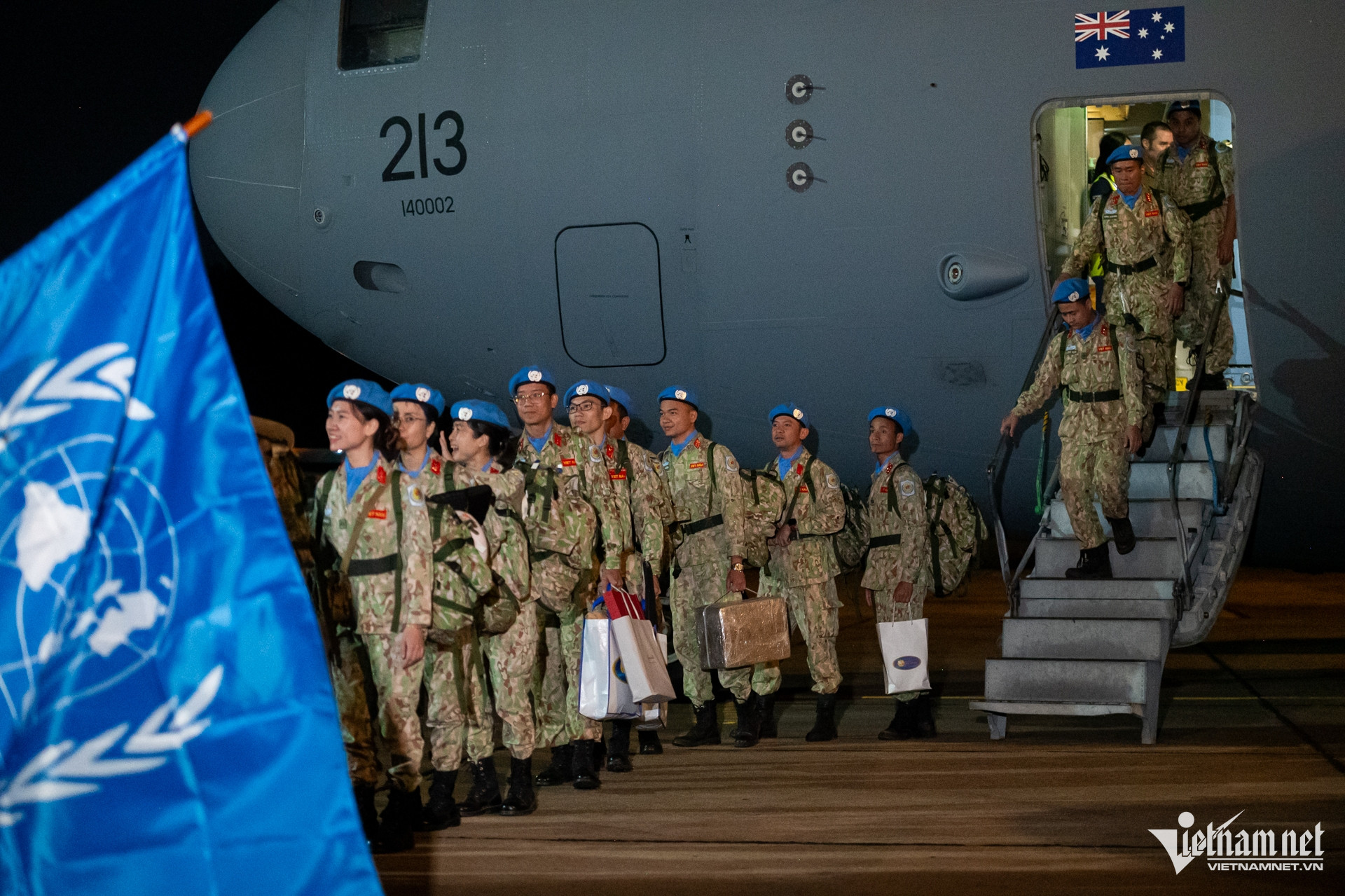 21h30 ngày 28/9, máy bay vận tải C17 của Không quân Hoàng gia Úc đưa 51 chiến sĩ "mũ nồi xanh" của Bệnh viện dã chiến cấp 2 số 5 về đến sân bay Tân Sơn Nhất (TPHCM) sau một năm thực hiện nhiệm vụ quốc tế ở Nam Sudan.