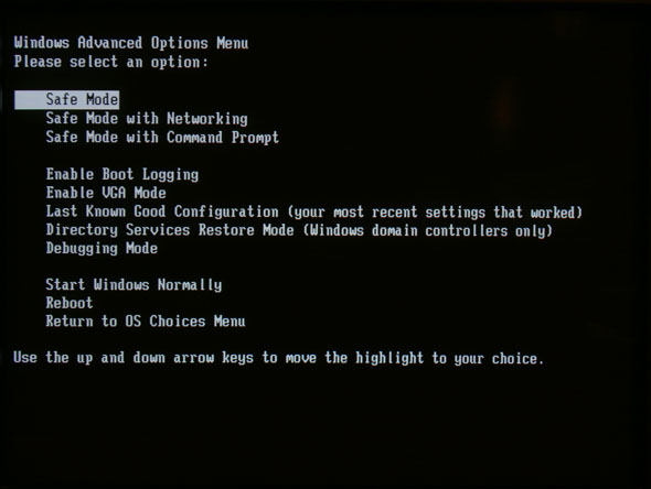 Ngay cả khi không thể khởi động bình thường vào Windows, bạn vẫn có thể vào Windows bằng chế độ Safe Mode. Nhấn F8 sau khi khởi động, ở menu hiện ra bạn chọn Safe Mode.