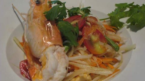 Hầu như ai đã đến Bangkok đều muốn nếm thử món Som Tam. Đây là một loại salad đu đủ xanh với tôm thanh mát, có đầy đủ vị mặn của muối, vị chua của cốt chanh, vị ngọt của đường và vị cay của ớt Thái.