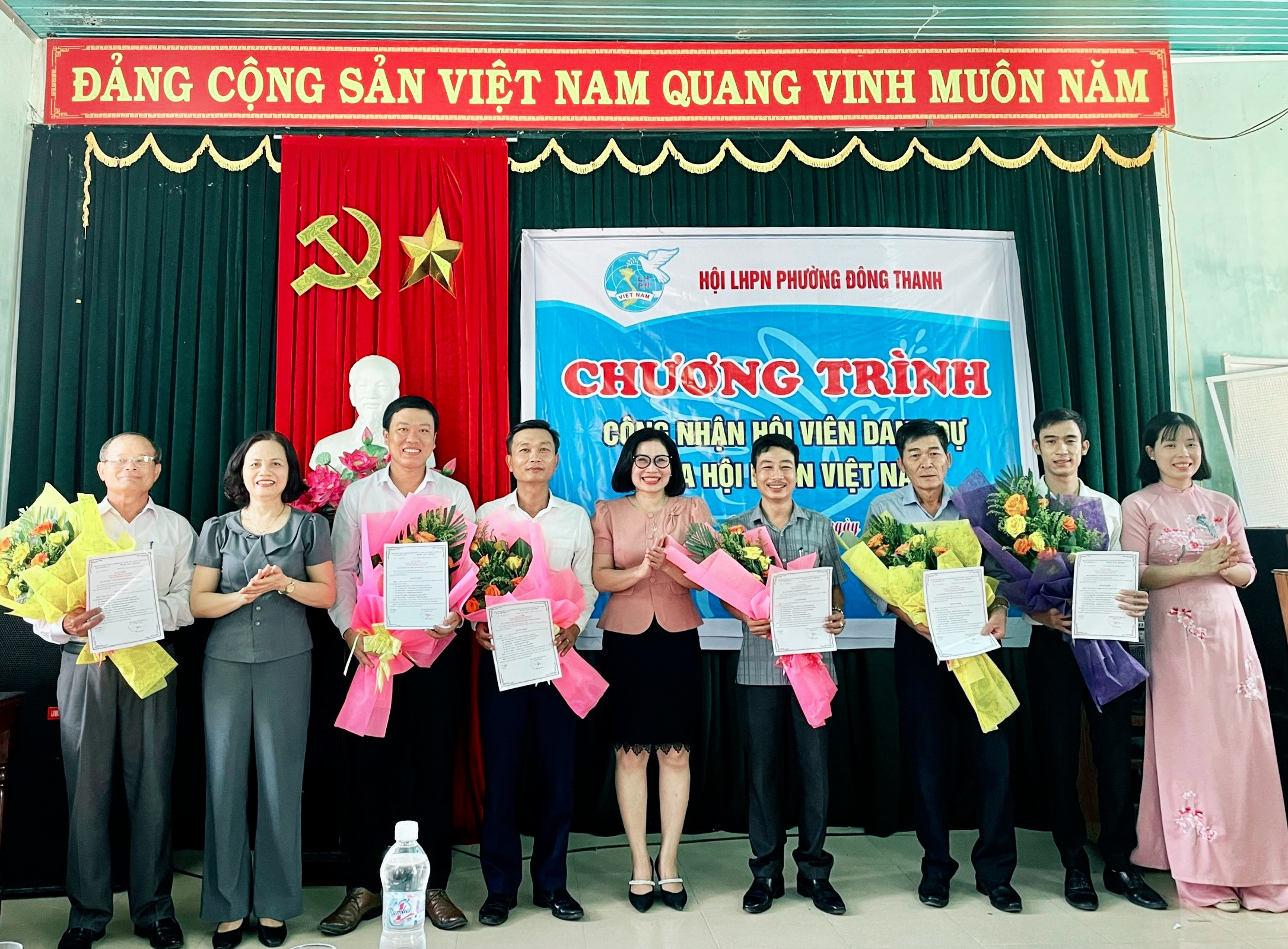 Theo Chủ tịch Hội LHPN tỉnh, vừa qua, Hội LHPN phường Đông Thanh tổ chức lễ trao quyết định của Ban Thường vụ Hội LHPN phường công nhận hội viên danh dự của Hội LHPN Việt Nam cho 6 nam giới, hiện là cán bộ phường, khu phố.