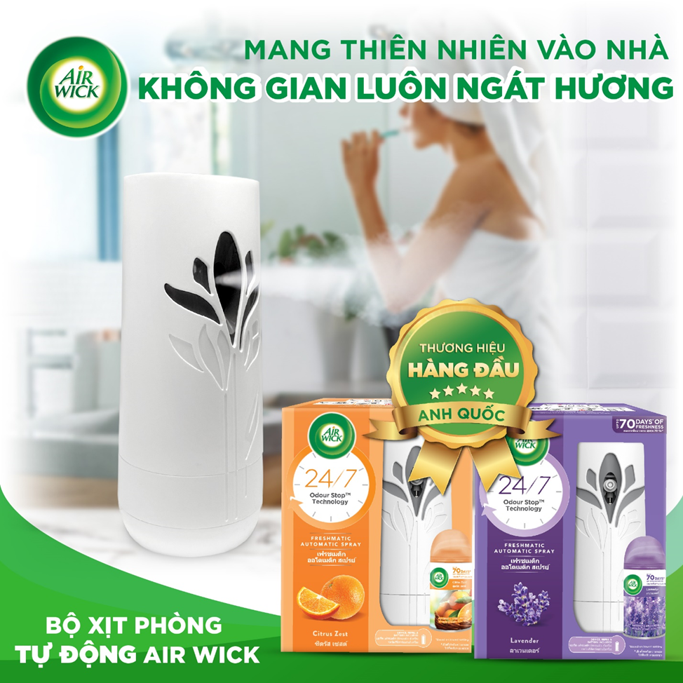 Air Wick là thương hiệu nổi tiếng về sản phẩm khử mùi và chăm sóc gia đình đã có hơn 70 năm đến từ Anh Quốc. Tại Việt Nam, Air Wick được phân phối bởi Công ty TNHH CLMV Distribution với các dòng sản phẩm bộ xịt phòng tự động, bình xịt refill tiết kiệm, bình xịt thơm 5 trong 1 và sáp thơm với các mùi hương như oải hương, hoa hồng và cam quýt. Hiện nay Air Wick Việt Nam phân phối chủ yếu qua kênh online như website, Shopee và Lazada, và các hệ thống siêu thị, cửa hàng tiện lợi Co.op Finelife, Co.op Xtra, USmart, 7-eleven, Medicare, fanpage https://www.facebook.com/airwickvietnamofficial |