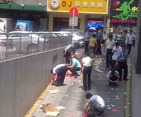 Khi cảnh sát ập vào kiểm tra một tụ điểm phân phối iPhone giả ở Trung Quốc, 4 nghi phạm không còn cách nào khác ngoài việc đốt giấy tờ và ồ ạt ném hàng qua cửa sổ làm đỏ rực cả một góc phố.