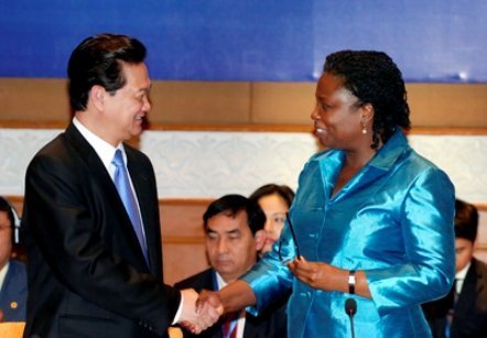 Thủ tướng Nguyễn Tấn Dũng và bà Victoria Kwakwa, Giám đốc Ngân hàng Thế giới tại Việt Nam. Ảnh: Cổng TTĐT Chính phủ |