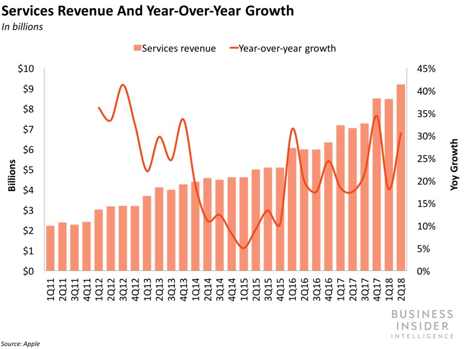 Không giống như dịch vụ của Netflix hay Amazon, các dịch vụ của Apple được xem là đăng ký không có định hướng. Thế nhưng, dựa trên các thông tin thẻ tín dụng của mọi người trên iCloud, Apple Music và các dịch vụ khác, Apple đang sở hữu 270 triệu thuê bảo trả tiền vào quý trước - tăng 100 triệu thuê bao so với cùng thời điểm năm ngoái.