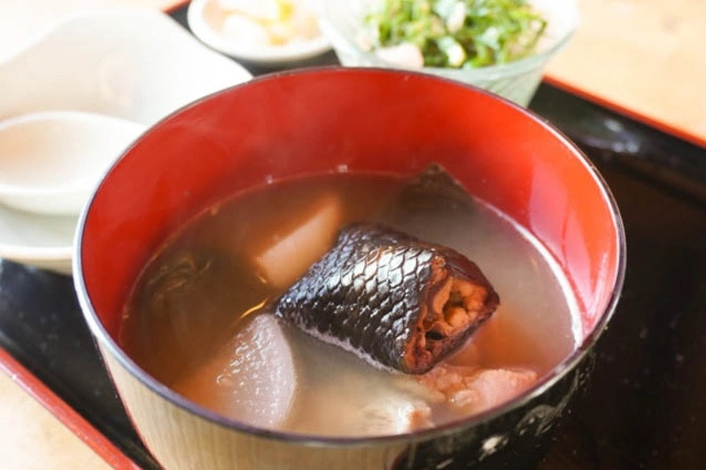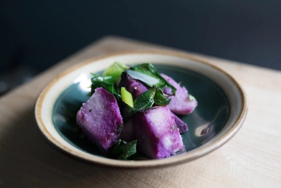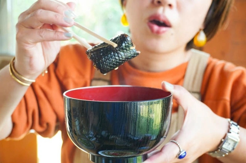 Khoai lang tím: Khoai lang tím hay beni imo là một trong những thực phẩm nổi tiếng ở đảo Okinawa. Loại khoai này có màu tím đậm độc đáo và hương vị đậm đà. Khoai được hấp, nướng hoặc chế biến thành các món ăn như bánh khoai. Ảnh: Bluezones.Goya champuru: Mướp đắng xào là một trong những món “champuru” - nghĩa là “pha trộn” - được yêu thích tại Okinawa. Trong đó, mướp đắng được xào với đậu phụ, thịt, trứng, nêm muối và xì dầu, ăn cùng cơm trắng. Loại quả này chứa nhiều chất tốt cho tim mạch và sức khoẻ. Ảnh: Gajinpottravel.Rafute: Món ăn truyền thống của Okinawa này là phần thịt ba chỉ lợn đen, giống lợn đặc trưng trên đảo, được kho nhừ với xì dầu hoặc miso, đường nâu và awamori (rượu gạo của đảo). Thịt sau khi kho rất mềm, thấm gia vị và béo ngậy, hợp ăn cùng cơm trắng trong mùa lạnh. Ảnh: Tasteatlas.Mì soba: Sợi mì dai chan nước dùng ninh từ thịt lợn và dashi là món ăn quen thuộc với người dân địa phương. Mì soba của Okinawa hòa trộn nhiều vị umami từ thịt ba chỉ hầm nhừ, bánh cá, hành xanh và gừng muối đỏ. Ảnh: Ufuya/Livingnomads.Rong nho: Được biết đến với cái tên umibudo ở Okinawa và Kagoshima, rong nho tạo cảm giác nổ thú vị trong miệng khi ăn. Thực phẩm này có trong những vùng nước quanh Okinawa. Chúng được ăn khi còn tươi, trộn với dấm, xì dầu, mirin, hoặc với sốt mặn ngọt. Bạn có thể gọi món này ở bất cứ đâu, từ nhà hàng, siêu thị đến các nhà ga ven đường. Ảnh: Gajinpottravel.Canh rắn biển: Món ăn này có mặt trong thực đơn truyền thống của Okinawa, cần nhiều công sức và thời gian để chuẩn bị. Rắn biển khoang đen được hun khói khoảng 1 tuần, sau đó đem rửa và luộc sơ trước khi gỡ xương. Tiếp đó, thịt rắn được hầm cùng rong biển và nước dùng ninh từ chân giò và xương sườn lợn. Giờ đây, rất ít nhà hàng trên đảo phục vụ món này, bạn cần đặt trước để đảm bảo được thưởng thức nó. Ảnh: Weekend-kanazawaĐậu phụ lên men kiểu Okinawa: Đậu phụ được tẩm ướp với rượu gạo awamori, men đỏ và men gạo komekoji, trước khi để lên men. Kết quả, đậu sẽ có vị như lai giữa phô mai và nhím biển, đậm đà và giàu dinh dưỡng. Món này rất hợp để ăn kèm khi uống rượu gạo, bia... Ảnh: Orion.