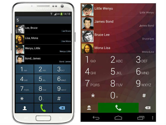 Một trong những ưu điểm lớn nhất của KitKat Dialer là ứng dụng cực nhẹ và hoạt động rất mượt mà. Các cuộc gọi gần nhất và danh bạ được liệt kê trong cùng một danh sách, với các cuộc gọi gần nhất ở phía trên, và danh bạ ở phía dưới.