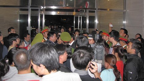 Lực lượng công an cũng có mặt để duy trì trật tự, ngăn cản những hành động quá khích của người dân do quá bức xúc. |