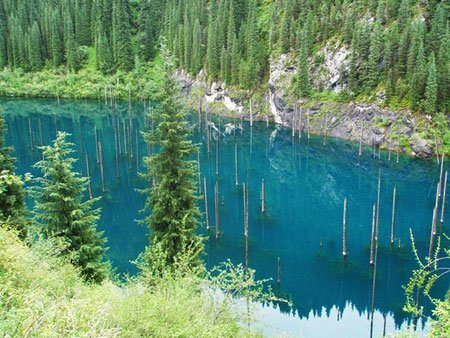 Kaindy là một hồ nước dài 400 mét, sâu gần 30 mét nằm cách thành phố Almaty 129 km và cao 2.000 mét so với mực nước biển. Nó được tạo ra bằng kết quả của một sạt lở đất đá vôi khổng lồ. Khu vực hồ này có nhiều danh lam thắng cảnh và một trong số đó là khu rừng ngập mặn nổi trên mặt hồ Kaindy.