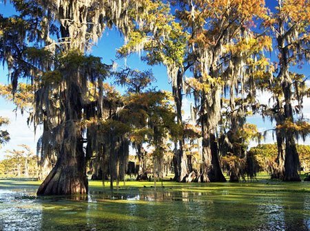 Khu rừng ngập mặn trên hồ Caddo rộng 103 km là vùng đất ngập nước nằm ở biên giới giữa Texas và Louisiana, Hoa Kỳ. Khác với những vùng hồ chết chóc nổi trên mặt nước, Caddo thu hút cực nhiều khách du lịch đến tham quan bởi những tán cây khổng lồ tuyệt đẹp rủ trên mặt nước, khiến cả vùng hồ mang một vẻ đẹp thần tiên hiếm có.