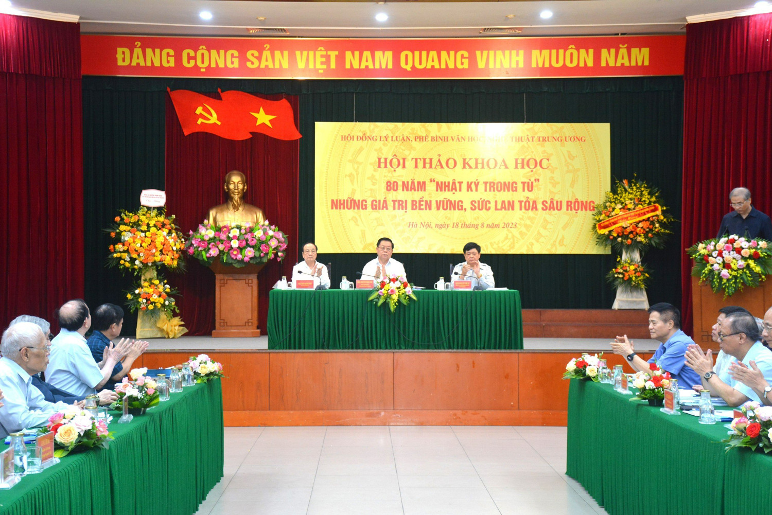 Chủ trì hội thảo có ông Nguyễn Trọng Nghĩa, Bí thư Trung ương Đảng, Trưởng Ban Tuyên giáo Trung ương; PGS.TS Nguyễn Thế Kỷ, Chủ tịch Hội đồng Lý luận, phê bình văn học, nghệ thuật Trung ương; PGS. TS Trần Khánh Thành, Phó Chủ tịch chuyên trách Hội đồng Lý luận, phê bình văn học, nghệ thuật Trung ương.