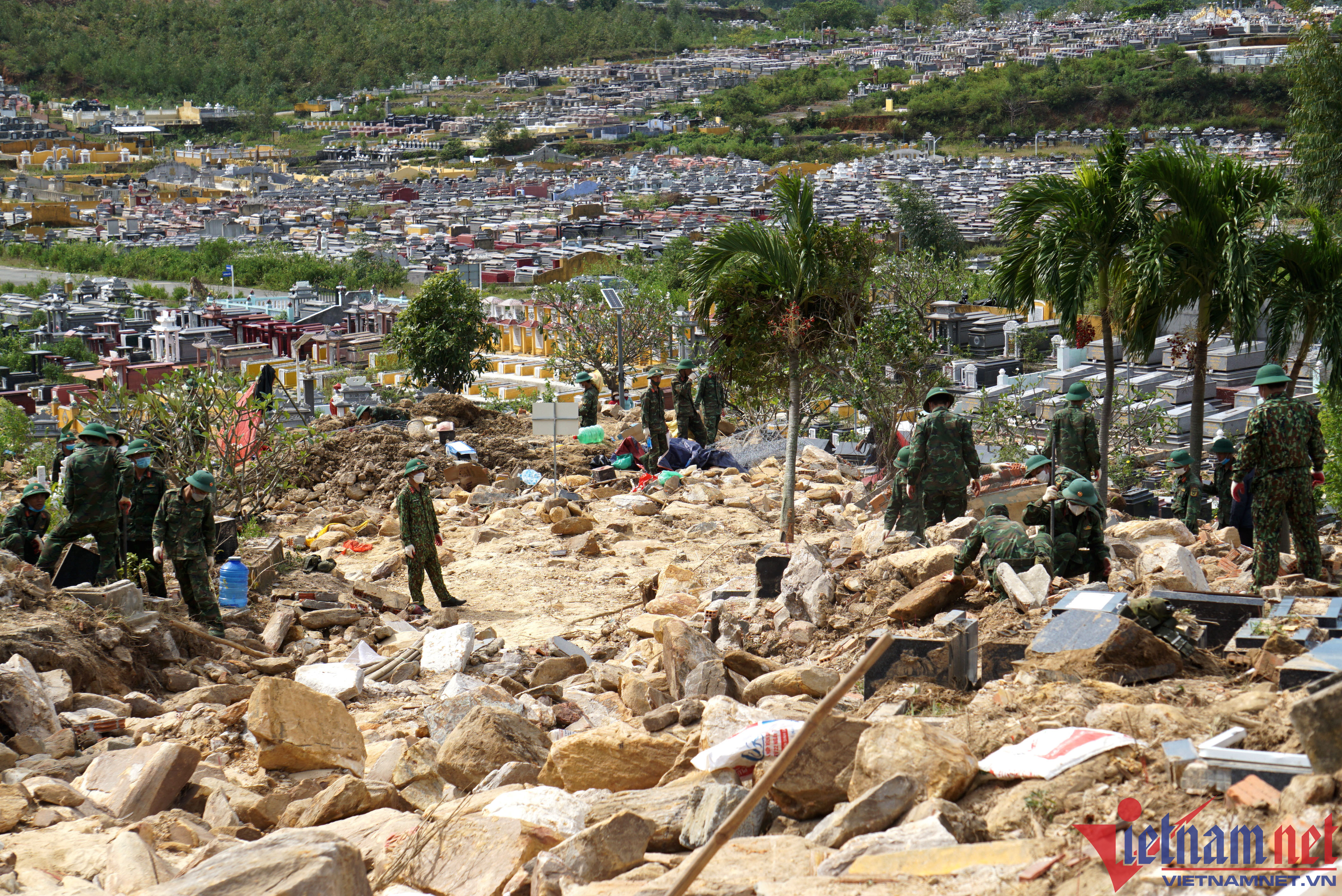 Gần 800 cán bộ, chiến sĩ Quân khu V và Bộ chỉ huy quân sự TP Đà Nẵng đang khẩn trương dọn dẹp sạt lở tại nghĩa trang ở xã Hòa Sơn, giúp người dân tìm kiếm mồ mả người thân bị vùi lấp