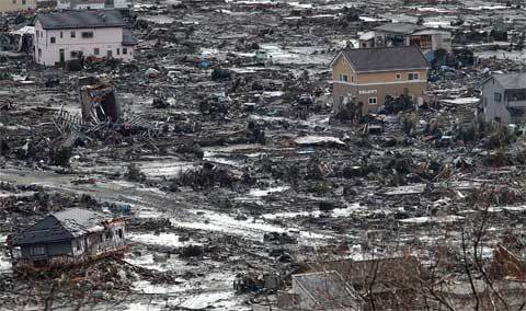 Cảnh tàn phá ở những vùng bị động đất, sóng thần tấn công
