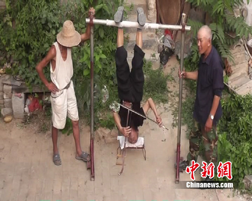 Mặc dù đã 81 tuổi nhưng một thầy giáo nghỉ hưu ở Trung Quốc vẫn có thể vừa "trồng cây chuối" vừa kéo đàn nhị hoặc viết thư pháp.