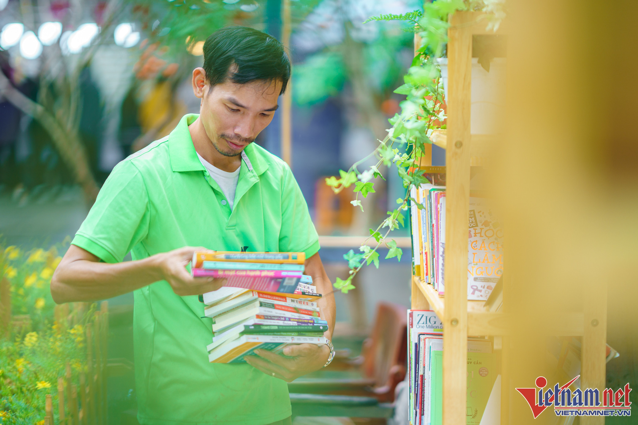 Anh bày biện, sắp đặt những chậu cây xanh, sửa lại kệ trưng bày hàng trăm cuốn sách rồi mời khách đến đọc miễn phí. Tại đây, sau khi đọc sách, khách sẽ được Tú Anh tặng một cây xanh tùy thích.