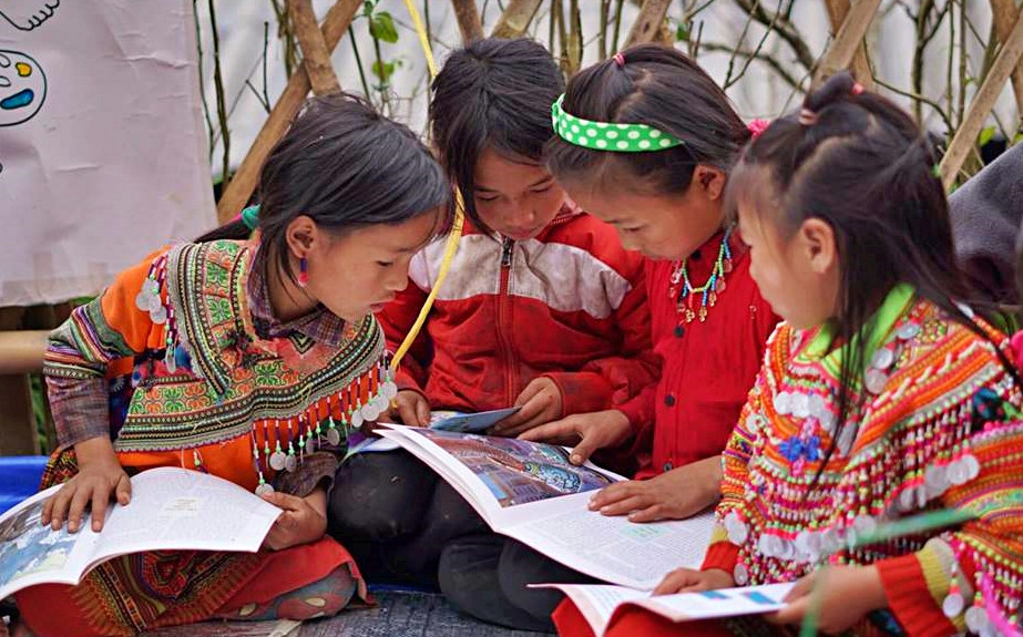 Gom đủ sách, Tú Anh ngồi phân loại, đóng lại thành từng thùng rồi lại hăm hở mang đến những bản làng xa ở vùng cao gửi tặng hoặc tổ chức lễ hội sách cho các em nhỏ.