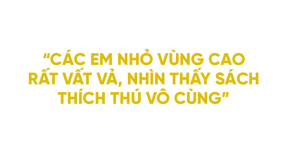 “Tôi cho rằng, muốn thoát khỏi cảnh tương lai mờ mịt, các em phải có tri thức. Nhớ lại lần lên bản chơi, tặng sách và được các em nồng nhiệt đón nhận, tôi nghĩ đến việc sẽ mang thêm sách từ dưới xuôi lên cho các em để các em giàu thêm tâm hồn, có thêm kiến thức”, Tú Anh nói.