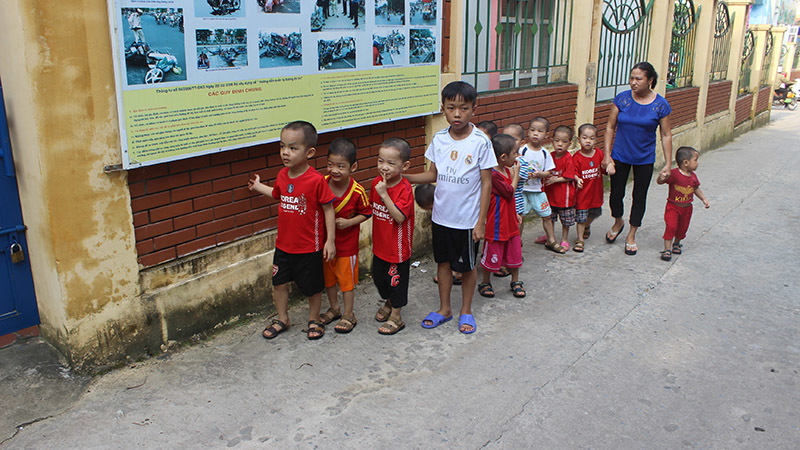 Hiện các em đi học ở trường mầm non Hoa Hồng gần Trung tâm.