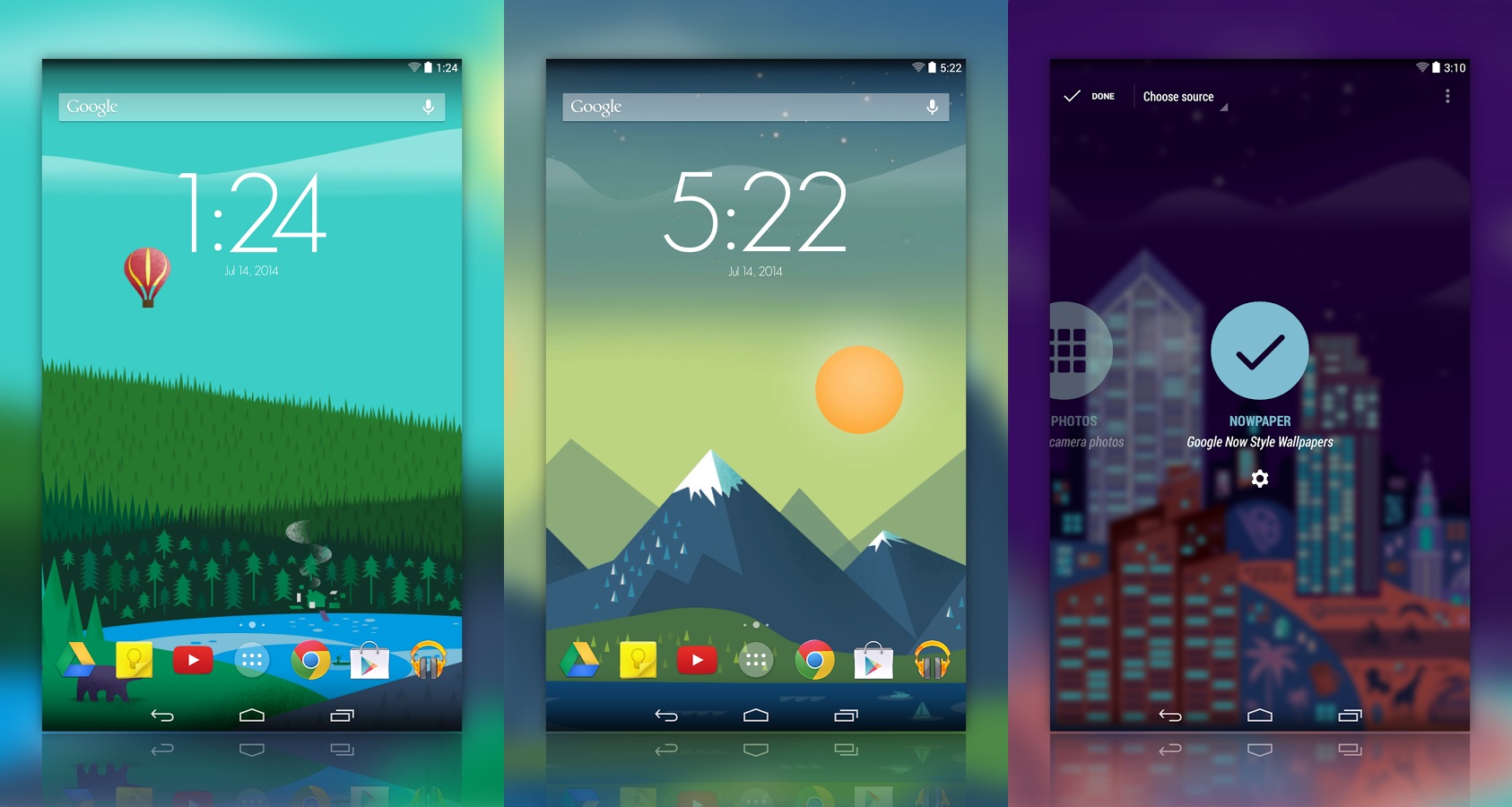 nowPaper cung cấp nhiều hình nền đẹp độ phân giải Full HD (1920 x 1080). Ứng dụng giúp thay đổi hình nền điện thoại theo thời gian (sáng, trưa, chiều, tối).