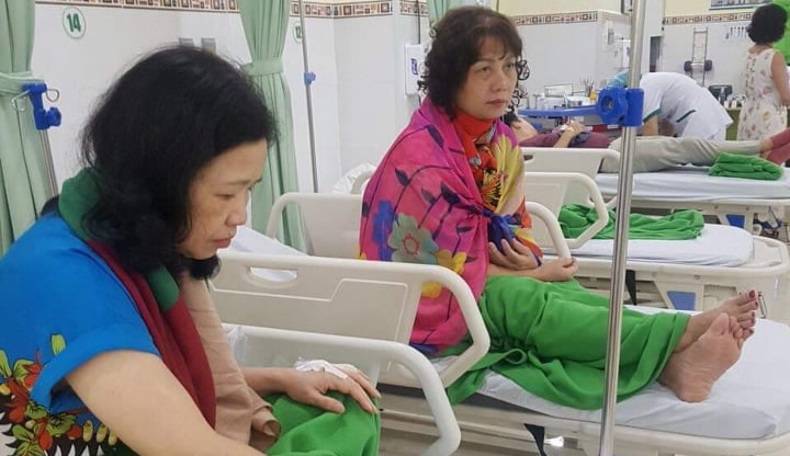 Hình ảnh du khách ngộ độc phải nhập viện được một người trong đoàn chia sẻ trên facebook. |