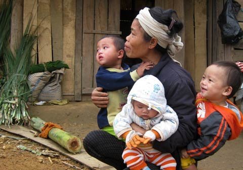 Chúng tôi đến nhà ông Lô Văn Hùng, ông bà vừa mất đi 2 con trai là Lô Văn Thông (SN 1988) và Lô Văn Minh (SN 1990). Cả hai ông bà đang bồng bế một lúc 3 đứa cháu, đứng bất thần trước di ảnh 2 đứa con trai tội tình.
