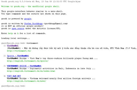 Để làm việc cùng Goosh, bạn truy cập http://goosh.org/ rồi gõ từ khóa vào ô tìm kiếm.