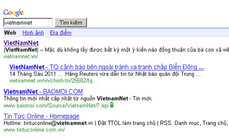 Ví dụ: tìm kiếm cụm từ “clip” tại trang http://vietnamnet.vn, bạn sẽ gõ vào như sau: “clip site: http://vietnamnet.vn”.