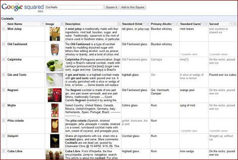 Khác hẳn trang kết quả của Google Search truyền thống, Google Squared (http://www.google.com/squared) không hiển thị danh sách đường link mà trình bày nội dung thành bảng biểu. Những kết quả thu được là tập hợp thông tin về một chủ đề theo dạng bảng tính để bạn tiện so sánh. Người sử dụng Squared có thể tự bào chế và chỉnh sửa “square” thông qua việc mở rộng tìm kiếm dựa trên gợi ý ban đầu.