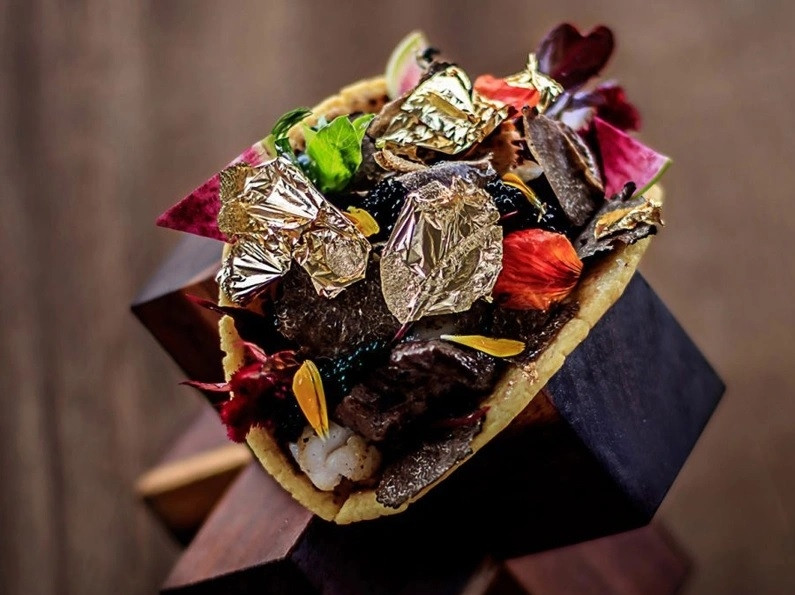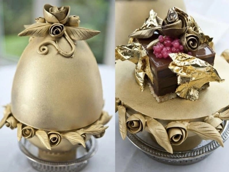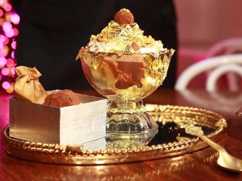 Tôm hùm Zillion Dollar Frittata: Với mức giá 2.000 USD (hơn 47 triệu đồng), bạn sẽ được thưởng thức món trứng đắt nhất tại nhà hàng Norma’s (New York, Mỹ). Bữa sáng đắt đỏ này bao gồm 300 g trứng cá muối sevruga, 5 trứng tươi, kem, hẹ và một con tôm hùm.Fleur Burger: Thành phần của một chiếc Fleur Burger gồm có thịt bò Waygu tẩm bơ, gan ngỗng ướp gia vị, nấm cục đen thái lát và bánh mì brioche. Thực khách có thể tìm thấy món burger đắt đỏ này trong menu của nhà hàng Fleur (Las Vegas, Mỹ) với mức giá 5.000 USD (khoảng 120 triệu đồng).Pizza Truffle vàng trắng: Pizza là món fastfood quen thuộc mà bạn dễ dàng tìm thấy tại bất kì hàng quán nào. Nhà hàng Margo’s (Malta) lại phục vụ một phiên bản nâng cấp hơn của món ăn này khi sử dụng nguyên liệu là phô mai mozzarella, phủ lên trên là những lá vàng 24 karat và nấm cục quý hiếm của Piedmont (Ý). Chiếc pizza được bán với giá 2.420 USD (hơn 57 triệu đồng).Posh Pie: Đây là sự kết hợp hoàn hảo của thịt bò hảo hạng, tôm hùm đá miền tây Australia và nấm Truffle đen quý hiếm. Món ăn này do đầu bếp Paul Medcalf của khách sạn Lord Dudley (Sydney, Australia) sáng tạo. Một phần Posh Pie có giá là 9.484 USD (hơn 226 triệu đồng).Phoenix Cupcake: Bánh được làm thủ công bằng chocolate hảo hạng của Italy, vàng miếng 23 karat có thể ăn được, đậu vani từ Uganda và dâu tây nhúng vàng. Để thưởng thức chiếc bánh ngọt được đánh giá là đắt nhất thế giới, thực khách phải trả 18.713 USD (hơn 440 triệu đồng). Món bánh xa xỉ này hiện được phục vụ ở Bloomsbury Cafe (Dubai).Chocolate Haute: Đây là món tráng miệng được nâng cấp, dành riêng cho các triệu phú của nhà hàng Serendipity 3 (New York, Mỹ), được bán với giá 25.000 USD (khoảng 600 triệu đồng). Chocolate Haute được làm bằng 14 loại ca cao quý hiếm và đắt nhất thế giới từ châu Phi và Nam Mỹ cùng các mảnh vụn của loại nấm truffle, phủ thêm 5 g vàng 24 karat. Món được phục vụ trong một chiếc cốc pha lê baccarat Harcourt, bọc bằng một chiếc vòng kim cương trắng và vàng 18 karat. Thực khách sẽ dùng chiếc thìa nạm ngọc trị giá 14.000 USD (hơn 300 triệu đồng) để thưởng thức món tráng miệng này.Taco: Grand Velas Los Cabos là khu nghỉ mát sang trọng bậc nhất ở Mexico. Chính vì vậy, những món ăn ở đây cũng phải được nâng cấp, sáng tạo để trở nên xứng tầm hơn. Món taco làm từ thịt bò Kobe thượng hạng, phô mai truffle Brie và bánh tortilla phủ vàng là một ví dụ. Với mức giá 25.000 USD (khoảng 600 triệu đồng), đây là món taco đắt nhất thế giới.Pudding chocolate: Nếu muốn thưởng thức món pudding đặc biệt này, bạn cần đặt lịch với nhà hàng của khu nghỉ dưỡng Lindeth Howe Country House (Anh) trước 2 tuần. Với giá tiền 35.000 USD (hơn 830 triệu đồng), thực khách sẽ được thưởng thức món pudding được làm từ 4 loại chocolate hảo hạng khác nhau của Bỉ. Chocolate được nhào nặn thành hình dạng của một quả trứng faberge, sau đó phủ một lớp thạch champagne, vàng lá. Khi ăn sẽ dùng kèm với champagne và trứng cá muối ở phía trên cùngFisherman’s Indulgence: Món tráng miệng của khu nghỉ dưỡng Fortress (Sri Lanka) được trang trí chỉn chu, như một tác phẩm nghệ thuật. Đặc biệt, phần chocolate ăn kèm còn được điêu khắc thành hình ảnh một người đánh cá giữa biển khơi, liên tưởng đến phong tục cổ xưa của Sri Lanka. Bên trên bánh gắn một viên đá Aquamarine 80 karat. Giá cho phần tráng miệng này là 14.500 USD (hơn 340 triệu đồng).