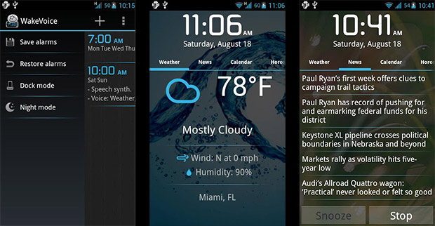 WakeVoice độc đáo ở chỗ ứng dụng tích hợp nhiều câu lệnh bằng giọng nói. Bạn có thể ra lệnh cho ứng dụng tạm ngừng hoặc tắt chuông. Ứng dụng sẽ nói lời chào buổi sáng, thông báo nhiệt độ ngoài trời.
