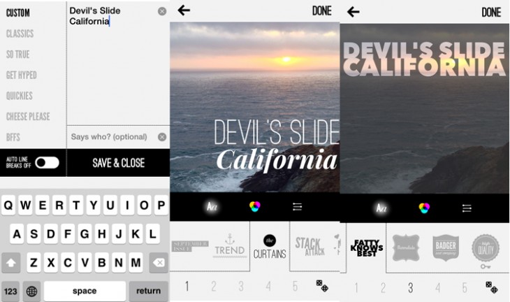 Ứng dụng có giá 2,99 USD do Oringe phát triển cho phép bạn chèn chữ trực tiếp vào ảnh hoặc tạo ra một lớp (mask) bên trong ảnh để tạo ra hiệu ứng độc đáo. Bảng điều khiển ứng dụng chỉ gồm 3 nút: một để chọn phong cách, một để chọn màu sắc và còn lại điều chỉnh độ trong suốt, độ sáng hình nền. Word Swag cũng cung cấp các mẫu (pattern) riêng để dùng làm hình nền. Bạn có thể viết gì mình muốn hoặc chọn từ thư viện các trích dẫn hay.