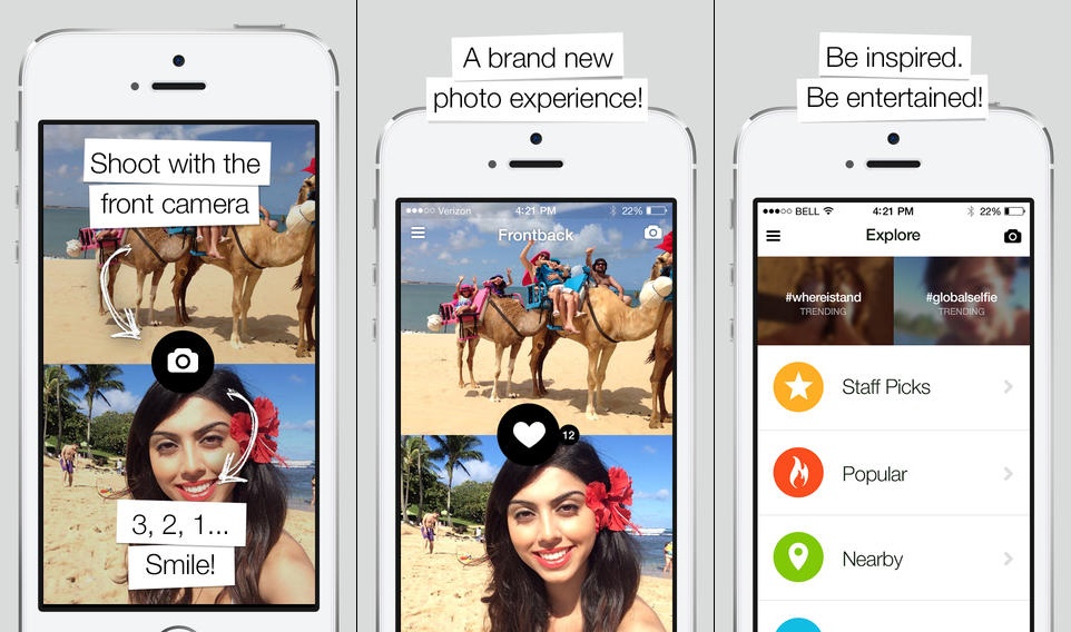 FrontBack được phát triển với ý tưởng rất đơn giản: Bạn chụp một bức ảnh bằng camera phía trước và một bức ảnh bằng camera phía sau của iPhone, rồi ghép chúng vào cùng một bức ảnh.