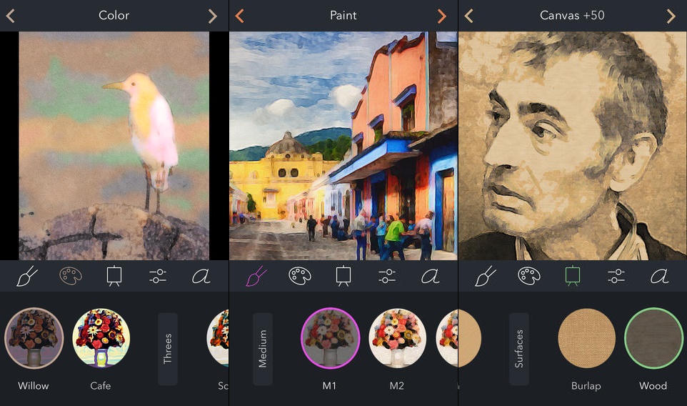 Ứng dụng BrushStroke sẽ biến ảnh chụp của bạn thành những bức tranh sơn dầu phong cách với nhiều nền vải vẽ khác nhau.