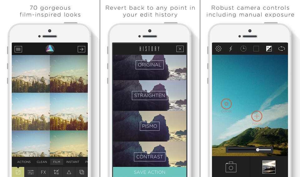 Litely cho phép bạn chỉnh sửa ảnh với những hiệu ứng mang phong cách phim ảnh. Với Litely, bạn có thể phóng to một số phần của bức ảnh, chỉnh sửa ảnh toàn cảnh (panorama). Litely rất dễ sử dụng. Bạn có thể tải về Litely miễn phí. Phiên bản tính phí cung cấp nhiều bộ lọc hơn.