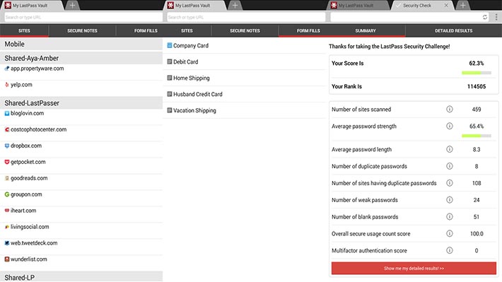 Giao diện của LastPass mới được làm mới nên khá đẹp. Ứng dụng bao gồm một bộ tạo mật khẩu, cho phép tự động đăng nhập vào các trang web. LastPass hỗ trợ cả máy tính bảng. Có plugin LastPass cho trình duyệt Firefox và Chrome. LastPass cho phép dùng thử miễn phí trong 14 ngày.