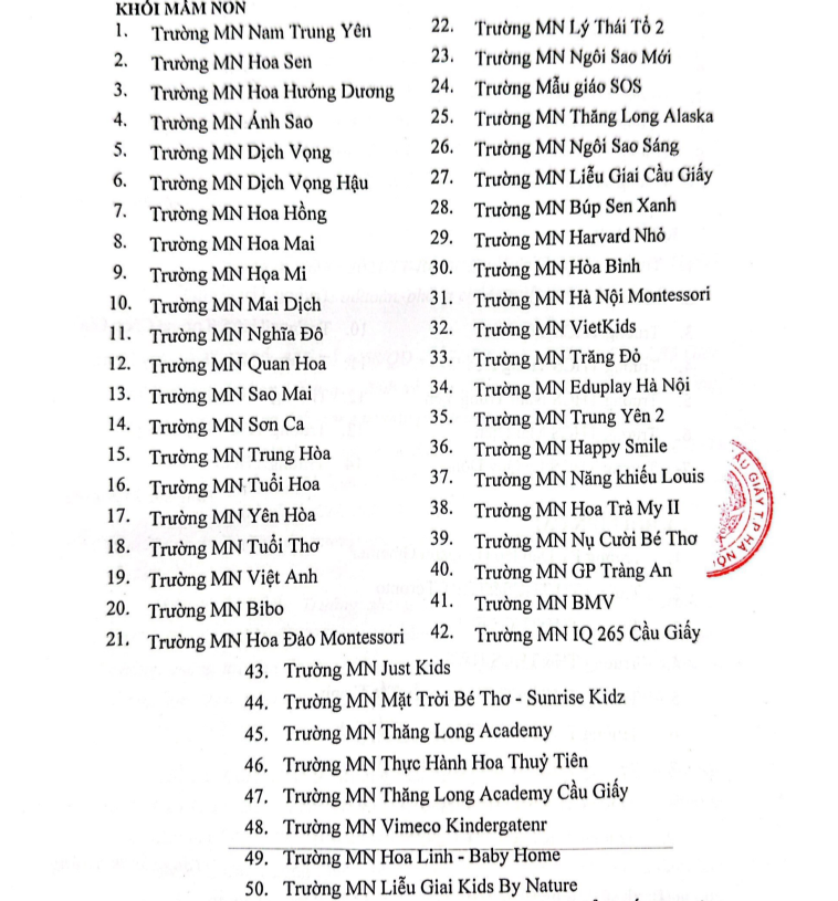 Quận Cầu Giấy (Hà Nội) vừa có quyết định về việc công nhận trường học an toàn, phòng chống tai nạn thương tích trong các cơ sở giáo dục mầm non, tiểu học, THCS năm học 2022-2023.