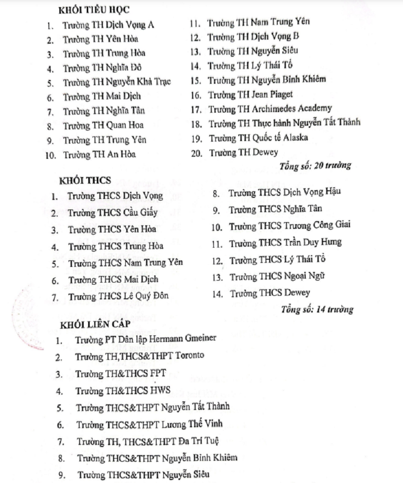 Quận Cầu Giấy cũng đề nghị các trường mầm non, tiểu học và THCS có nhiệm vụ đảm bảo và duy trì “Trường học an toàn, phòng chống tai nạn thương tích” theo đúng quy định và hướng dẫn của Bộ GD-ĐT.