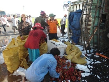 | Hiện trường vụ “hôi của” khi xe hoa quả bị lật ngày 28/7 vừa qua tại