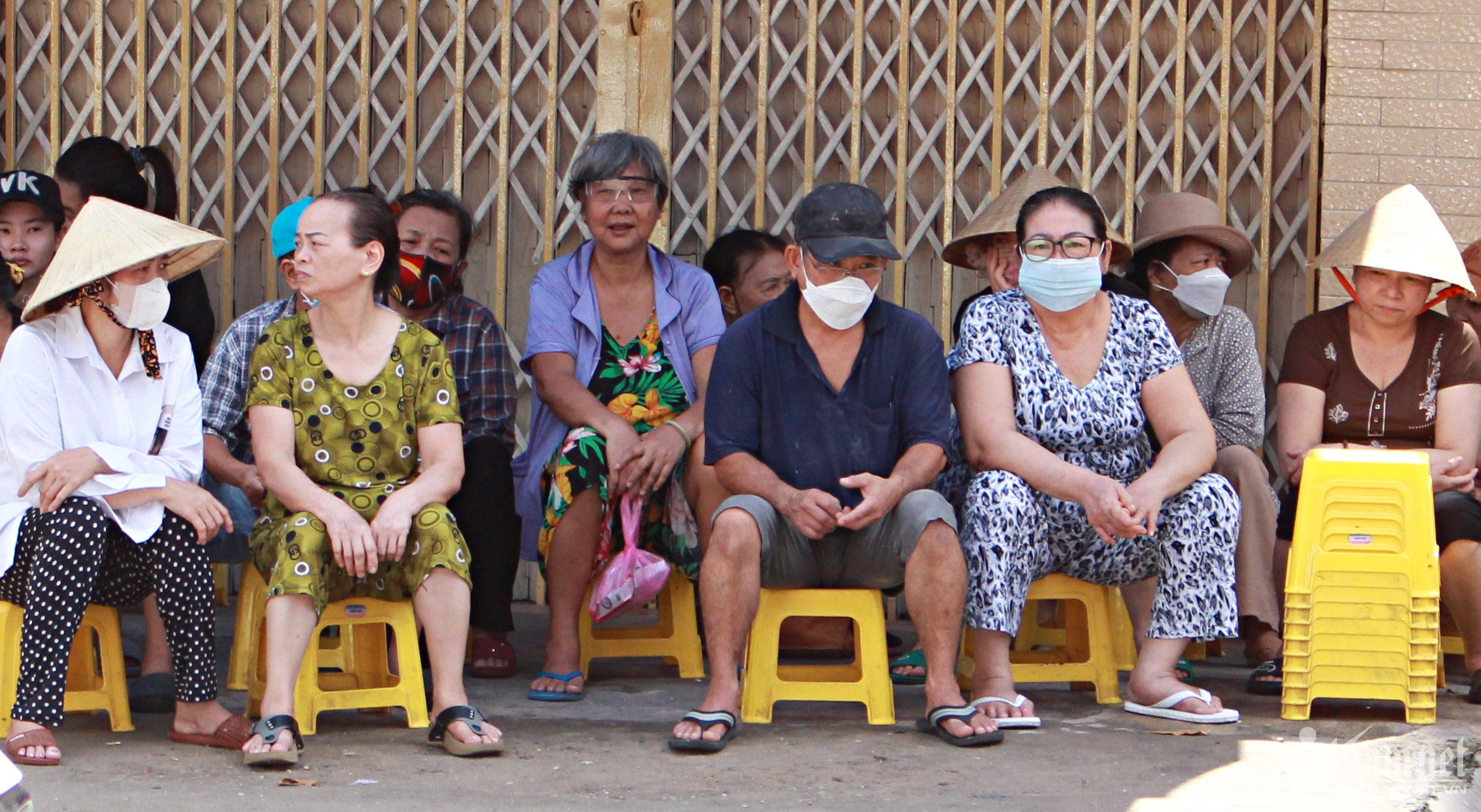 9h sáng, bà Lê Thị Kim Hoa (67 tuổi, quận Bình Thạnh, TP.HCM) tạm dừng việc bán vé số để đến trước số 69 Nguyễn Xí (phường 26, quận Bình Thạnh) chờ ăn buffet với giá 1.000 đồng. Bên cạnh bà, những người bán vé số, nhặt ve chai, khuyết tật, vô gia cư… cũng đang ngồi chờ.