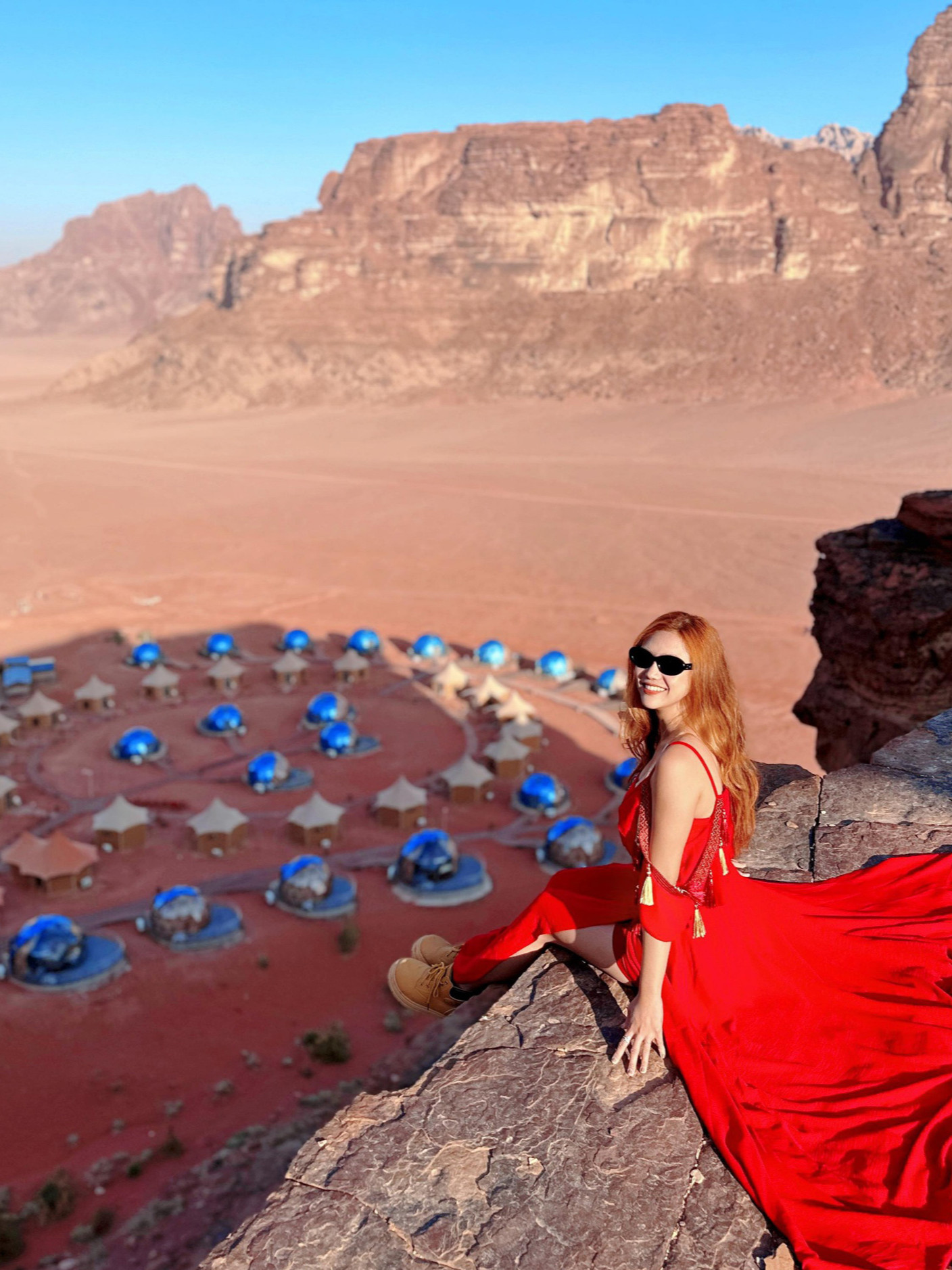 Tại Jordan, chị Điệp dành thời gian khám phá nhiều điểm đến nổi tiếng, trong đó có sa mạc Wadi Rum (hay còn gọi là thung lũng ánh trăng).