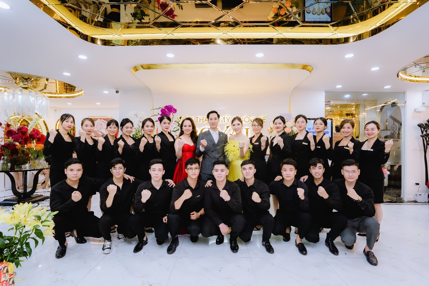 Không chỉ Á hậu Huyền My, Á hậu Tú Anh, ông bầu Vũ Khắc Tiệp, diễn viên Việt Anh, Đình Tú, Quỳnh Nga, Huyền Lizzie cũng có mặt tại lễ khai trương, cùng chúc mừng viện thẩm mỹ Quốc tế Royal.