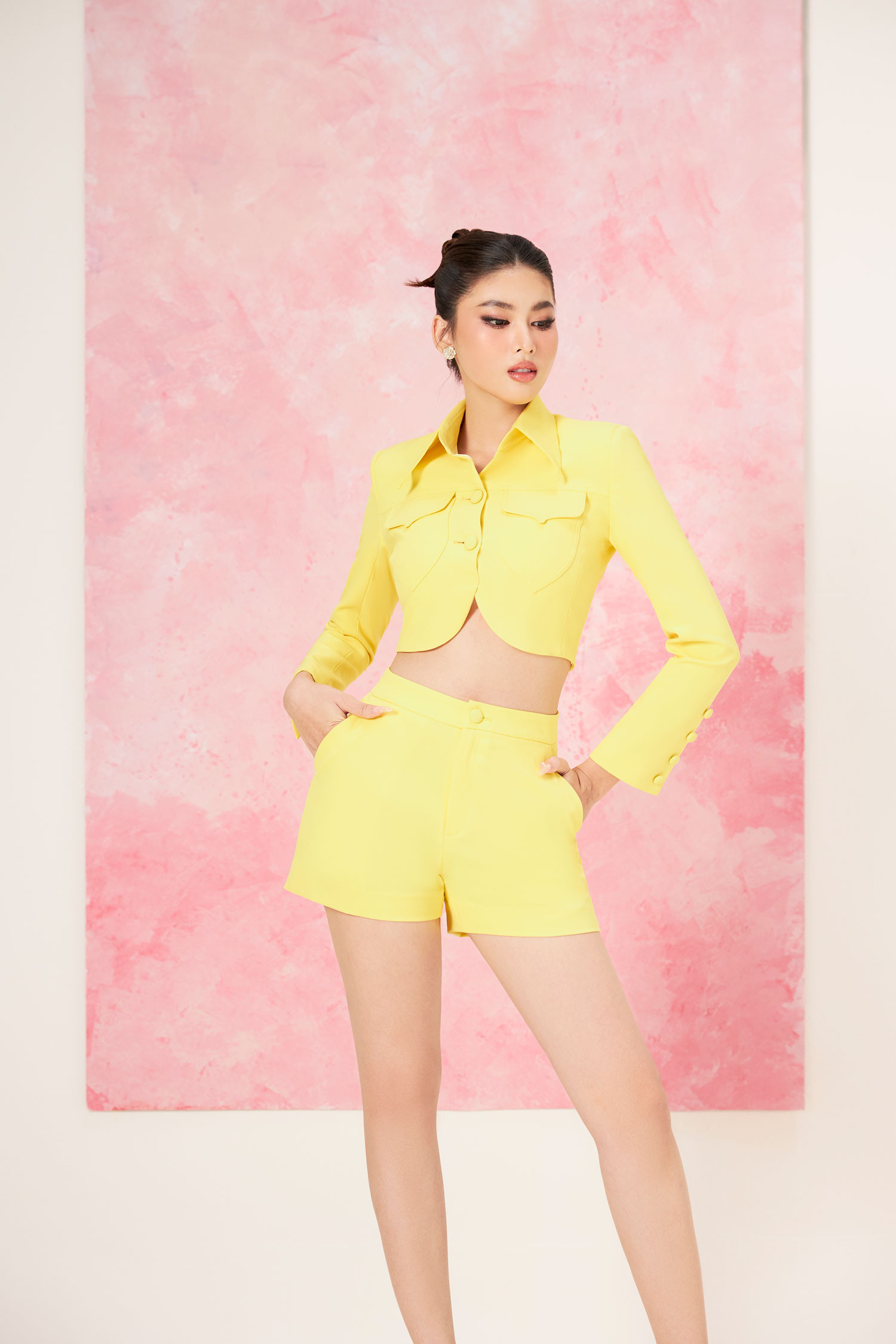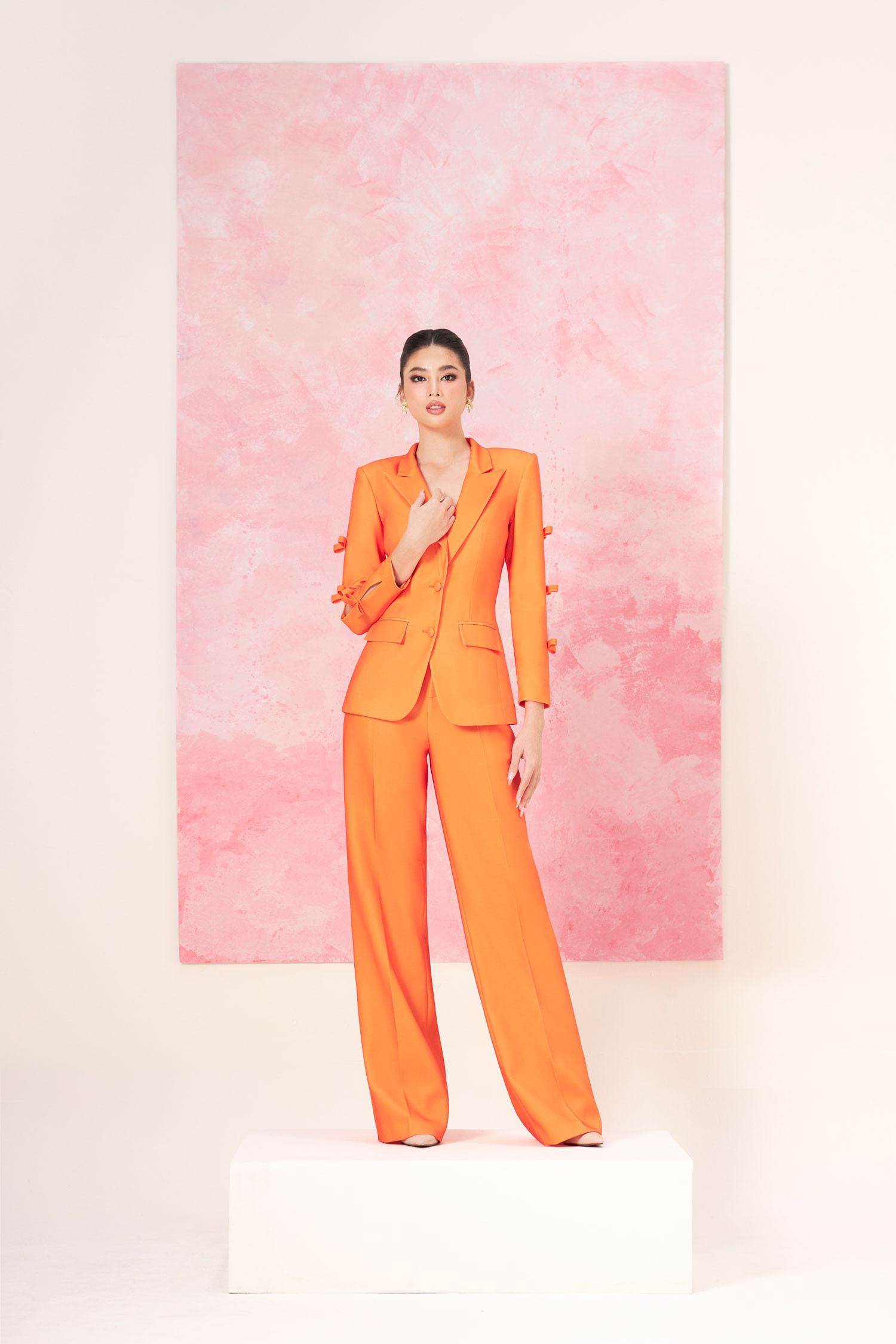Trên nền những phom dáng kinh điển cho phái đẹp như đầm bodycon, đầm bút chì, váy chữ A, blazer, suit..., Lê Ngọc Lâm biến hóa trang phục hiện đại như blazer lửng, blazer chiết eo tay bồng, đầm suông độn vai, váy bodycon với phần vai chồm cảm hứng quý tộc...