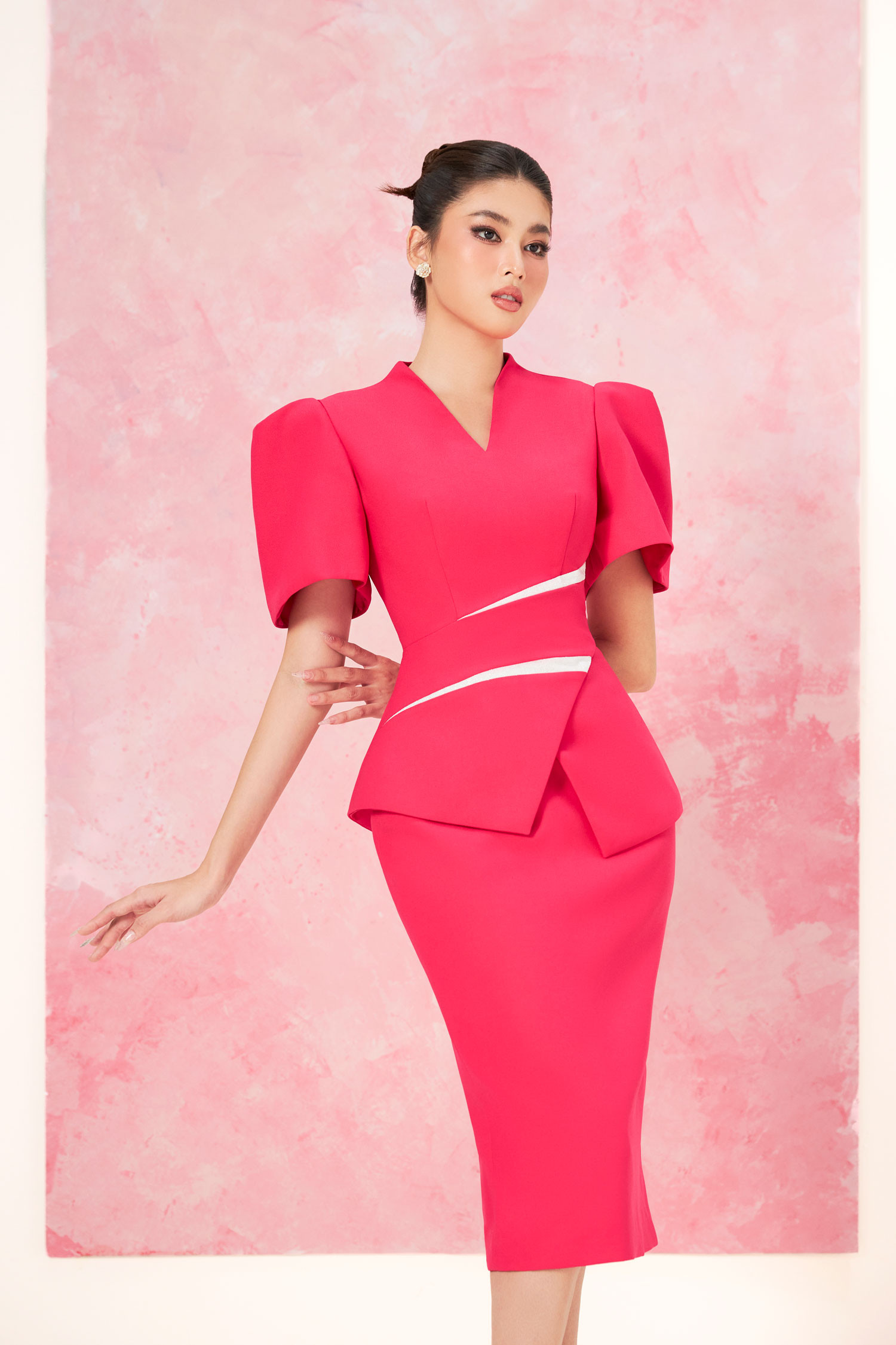 NTK tạo các mẫu váy áo công sở vẫn giữ tinh thần thanh lịch, nữ tính đặc trưng nhưng tạo điểm nhấn bằng những chi tiết phá cách.
