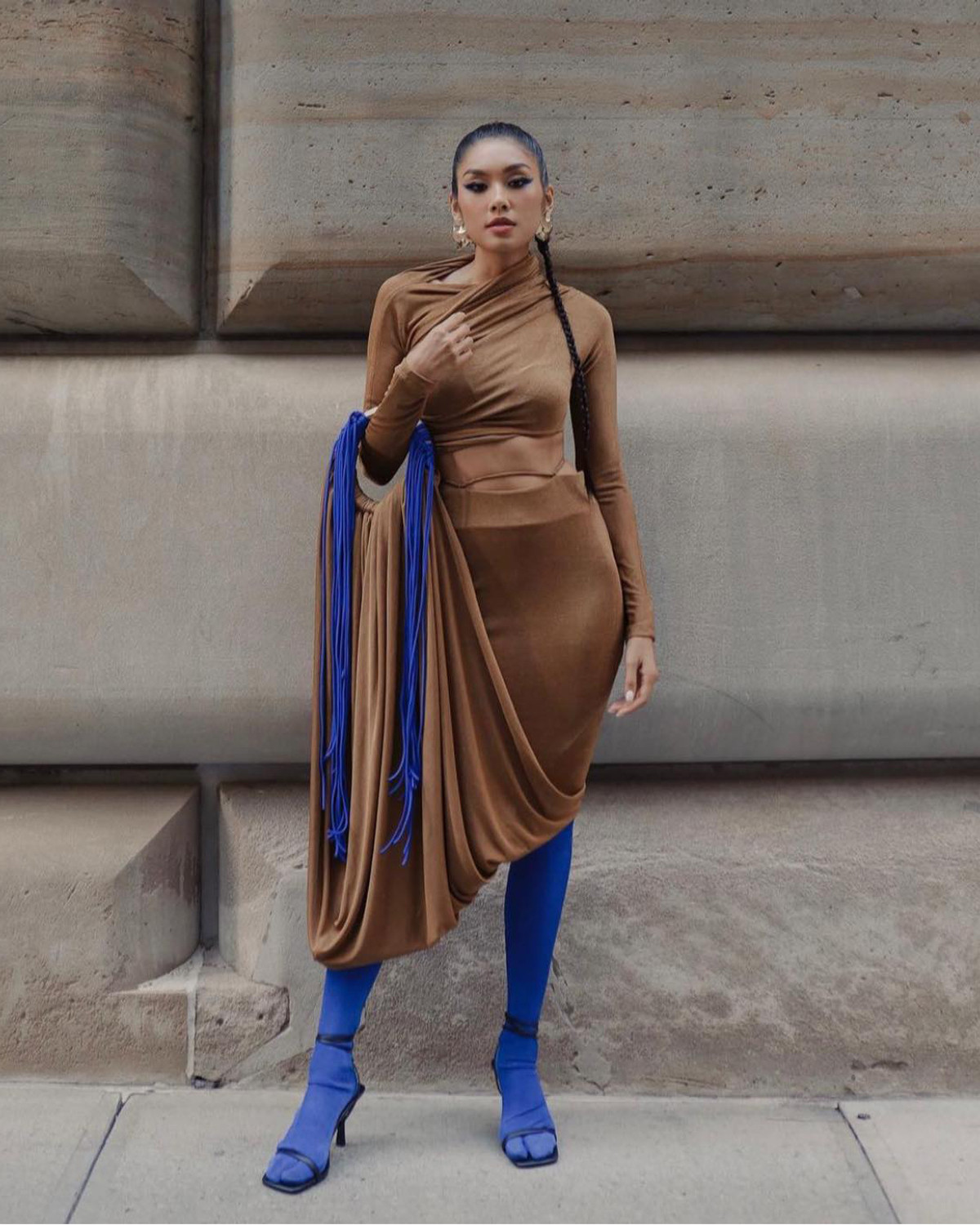 Sau cuộc thi Hoa hậu Hoàn vũ Việt Nam (Miss Universe), Á hậu Thảo Nhi Lê tập trung giới thiệu với bạn bè thế giới các thiết kế đến từ nhà mốt nội địa, như một cách tôn vinh giá trị sáng tạo Việt Nam đương đại. Cô thích cực tham gia các tuần lễ thời trang tại New York, Milan, Paris.Á hậu Thảo Nhi Lê hợp tác với nhà thiết kế Cường Đàm để có diện mạo cá tính, nổi bật trong những hoạt động ở New York Fashion Week. Trên đường phố New York, người đẹp Việt kiều Đức diện thiết kế làm từ chất liệu da với kiểu dáng sáng tạo.Mỹ nhân 9X còn diện một set trang phục độc đáo khác với vạt váy được biến thành chiếc túi xách.Hình ảnh ấn tượng giúp màn hợp tác của Thảo Nhi Lê và Cường Đàm được tạp chí Vogue Singapore đưa tin.Trong bài báo, Vogue Singapore cho biết Thảo Nhi Lê là một trong những 'nàng thơ' cho chiến dịch mới của Cường Đàm, truyền tải thông điệp về thế hệ toàn cầu với tinh thần cởi mở, dám phá bỏ những giới hạn thông thường.Ngoài những trang phục mang đến New York Fashion Week, Thảo Nhi Lê còn hợp tác thực hiện bộ ảnh với Cường Đàm, lấy bối cảnh quen thuộc tại các con phố Việt Nam, kết hợp với hiệu ứng thị giác tạo nên cảm hứng futuristic, gợi mở suy nghĩ về con người trong thời đại mới.Chia sẻ với Vogue Singapore về lần kết hợp cùng Cường Đàm, Thảo Nhi Lê cho biết cô yêu thích các thiết kế của nhà thiết kế 9X nhờ sự độc đáo từ hình dáng đến chất liệu. 'Tôi tự hào vì người yêu thời trang Việt Nam đang hướng đến những local brand chất lượng', Thảo Nhi Lê nói.