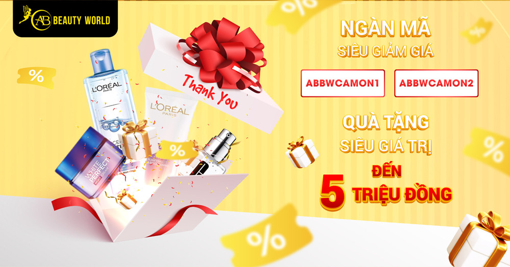 Để tri ân khách hàng và đối tác đã đồng hành cùng công ty, AB Beauty World tung ra 5.000 mã giảm giá. Cụ thể, khi mua hàng với hoá đơn từ 500.000 đồng khách hàng nhập mã “ABBWCAMON1” sẽ được giảm 100.000 đồng, hoá đơn từ 300.000 đồng nhập mã “ABBWCAMON2” được giảm 50.000 đồng.