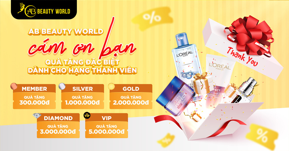 Chuỗi siêu thị dành riêng 3000 quà tặng giá trị cho hội viên mua sắm tại AB Beauty World, mỗi phần quà tương ứng với từng hạng thẻ: Member: Quà tặng trị giá 300.000 đồng; Silver: Quà tặng trị giá 1 triệu đồng; Gold: Quà tặng trị giá 2 triệu đồng; Diamond: Quà tặng trị giá 3 triệu đồng; V.Diamond: Quà tặng trị giá 5 triệu đồng.